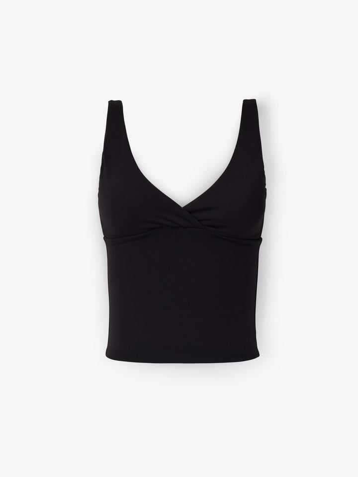 Nytt design med wrap effekt fremme, brede stropper og V fasong i rygg, like fin til hverdags som på trening. Innebygd bh fremme. Ingen sjenerende søm i ryggen.