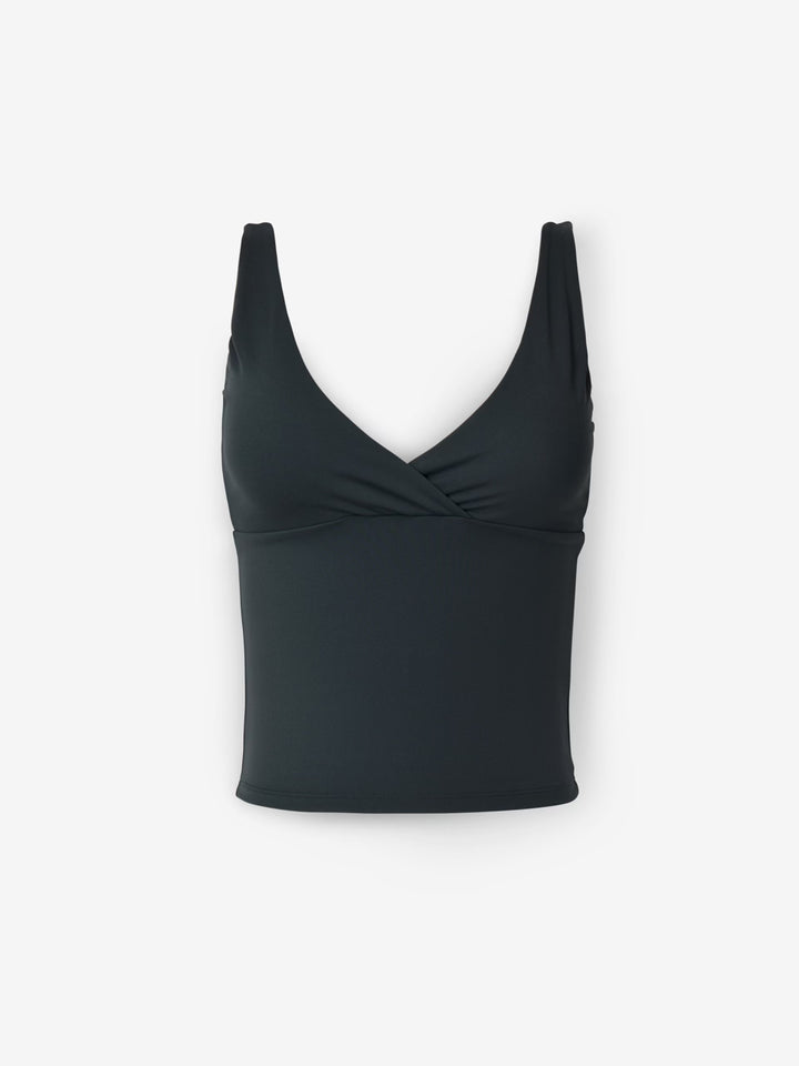 Nytt design med wrap effekt fremme, brede stropper og V fasong i rygg, like fin til hverdags som på trening. Innebygd bh fremme. Ingen sjenerende søm i ryggen.