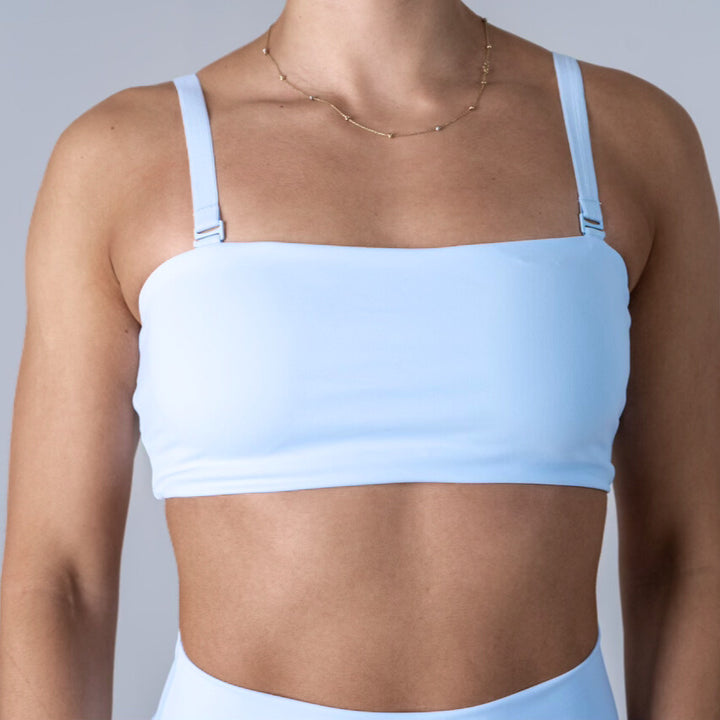 Stoffet er super mykt, stretch, tynt og matt. Delikat ton-i-ton farge silikon logo bak som tåler alt av vask og bruk. Innlegg kan tas ut. Stroppene kan brukes enormt mange måter grunnet justerbar hempe med fester både bak og fremme. Den kan også brukes uten stropper og med halterneck med en stropp rundt halsen. Stroppene er tykke slik at dette produktet gir god support for bryst.