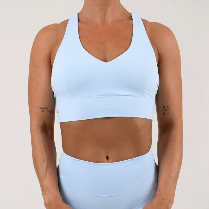 Kult design med V front og åpen rygg med stropper bak, god hold under øktene dine men designet gjør at den ikke graver seg inn.